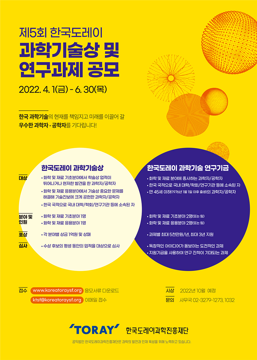 제5회 한국도레이 과학기술상 및 연구과제 공모
